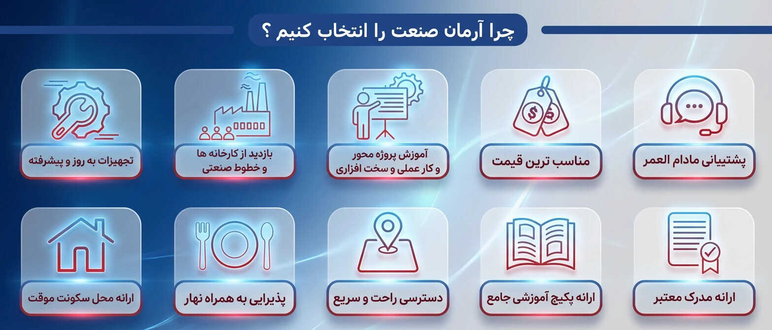 .میخواهی وارد دنیای اتوماسیون و برق صنعتی شوی، مسیر پیشرفت شغلیات را بسازی و به درآمد تخصصی برسی؟ اولین گام، شرکت در دورهای است که مسیر را روشن میکند. دوره برق صنعتی آرمان صنعت برای ورود به دنیای حرفهای صنعت طراحی شده است؛ جایی که با مفاهیم پایه، پیشنیازها و نحوهی کار با تجهیزات صنعتی آشنا میشوی و قدم بهقدم به مهارت واقعی نزدیکتر میگردی.